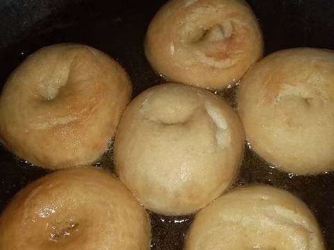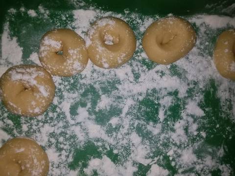 - 4.Tinju dan bulatkan adonan sesuai selera.lalu lubangi tengahnya menggunakan spuit.